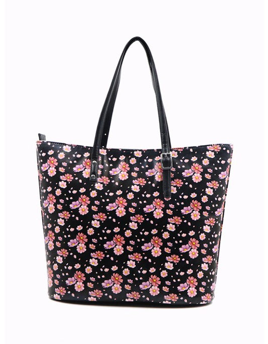 Floral Isabella Printed Tote Bag in black color